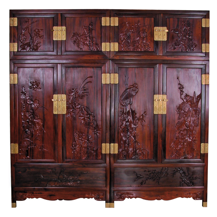 大红酸枝花鸟顶箱柜